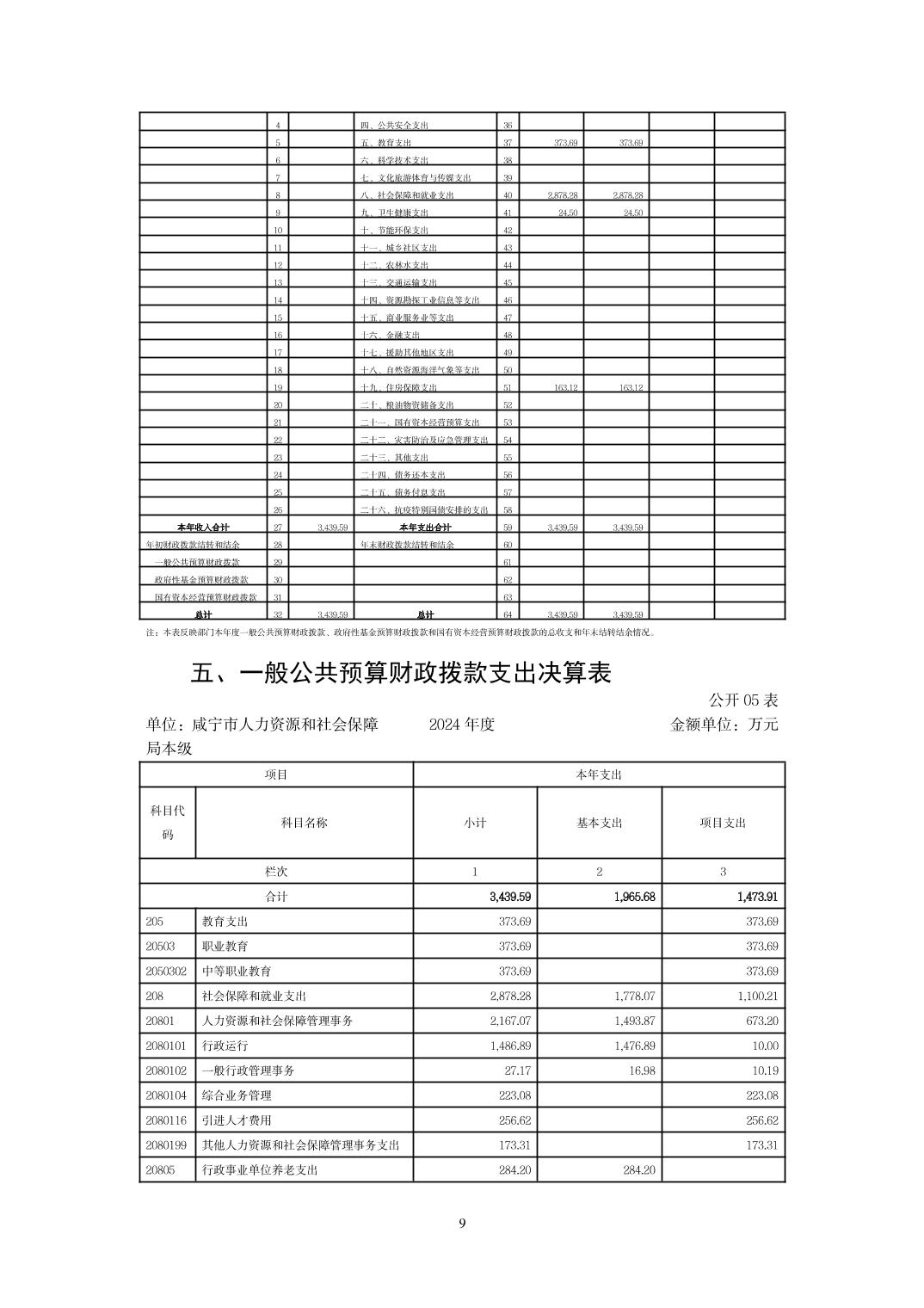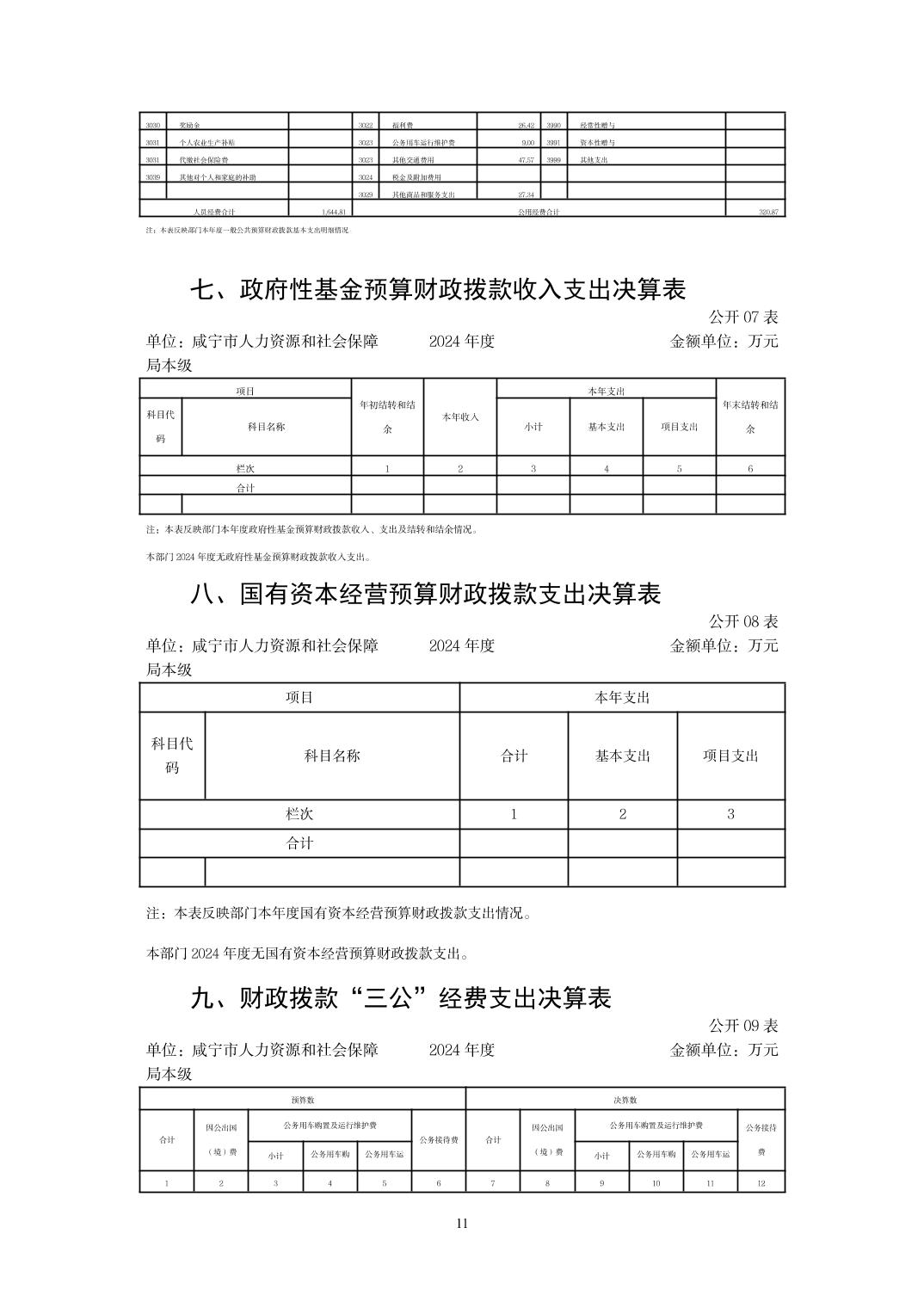 名 称: 咸宁市人力资源和社会保障局本级 2024年度部门决算 发布日期: 2025年09月23日