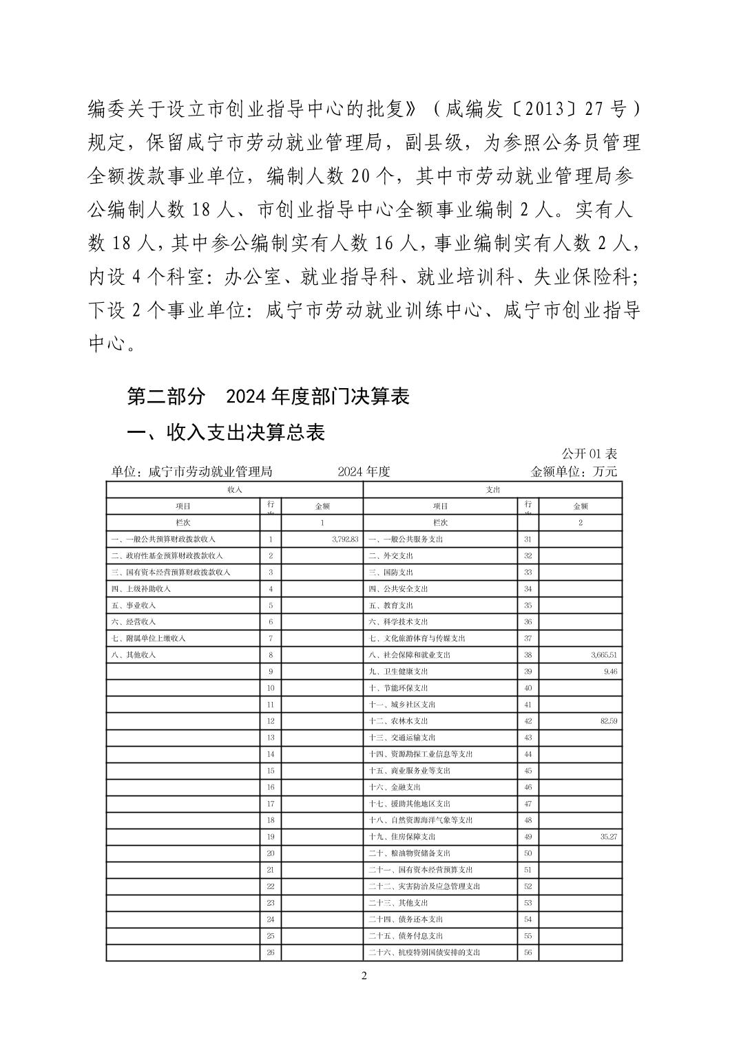 名 称: 咸宁市劳动就业管理局2024年度部门决算 发布日期: 2025年09月24日