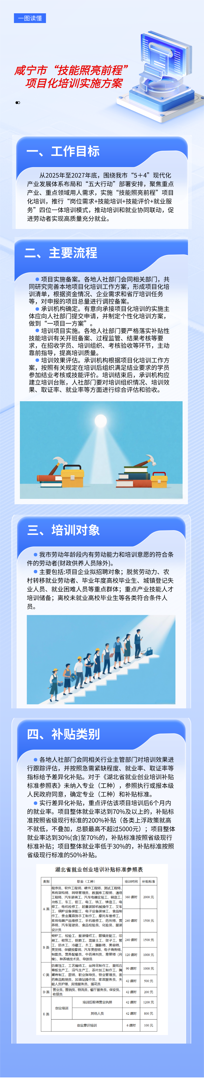 名 称: 【图文解读】一图看懂《咸宁市“技能照亮前程”项目化培训实施方案》 解读类型: 部门解读