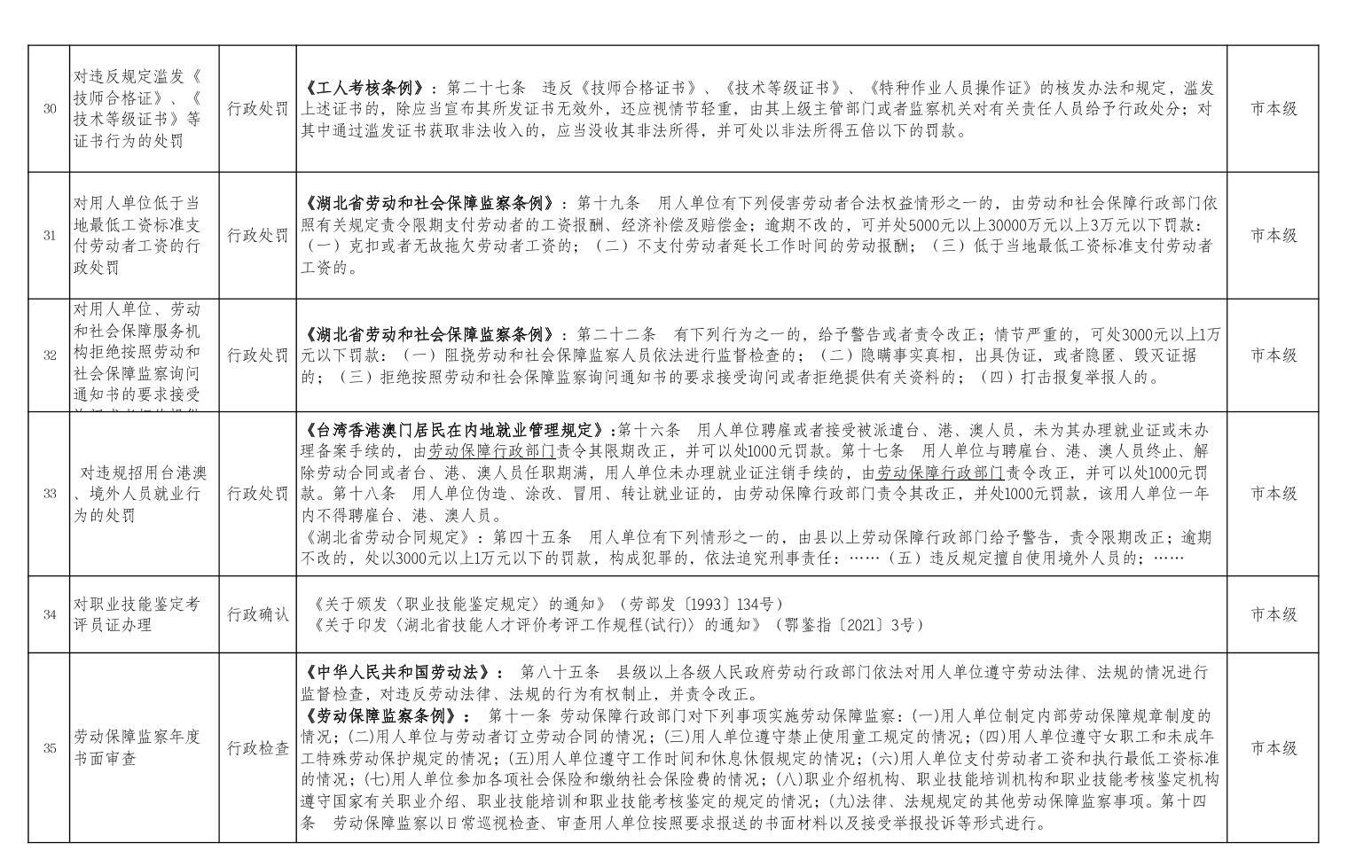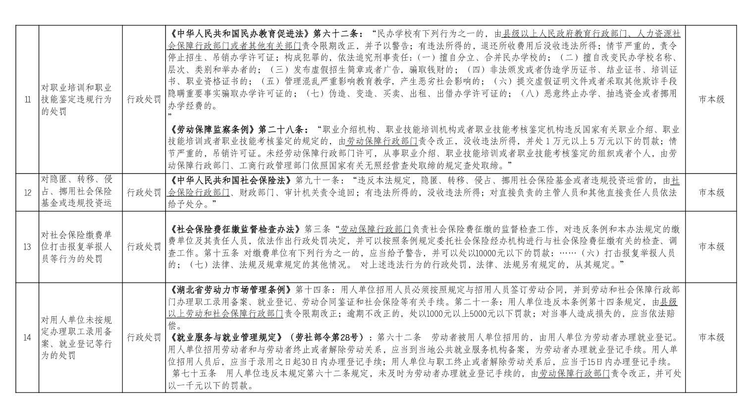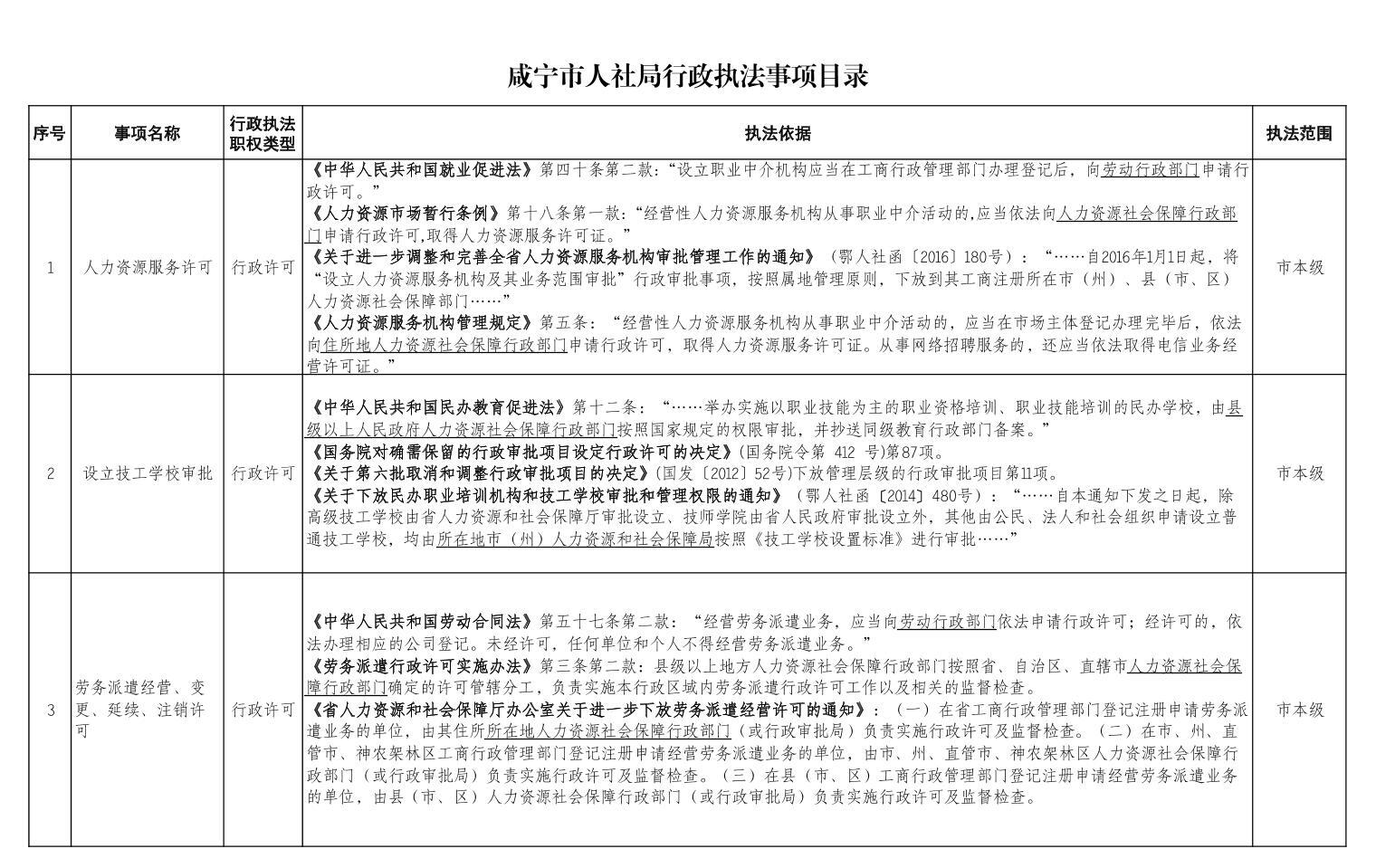 咸宁市人社局行政执法事项目录 -凯发app平台官网